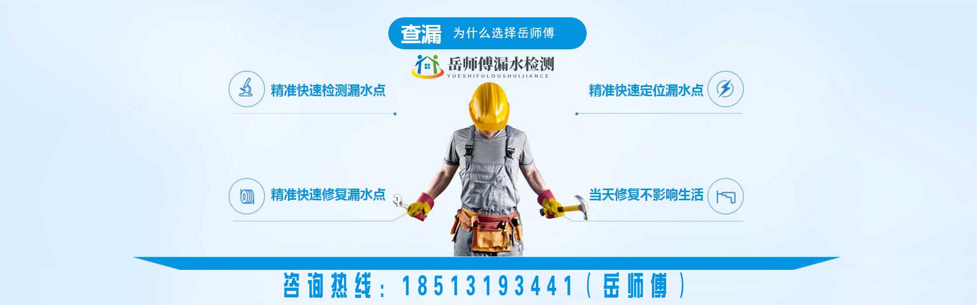 北京岳師傅漏水檢測(cè)維修(北京京誠快修漏水檢測(cè)有限公司)專業(yè)從事漏水檢測(cè)維修服務(wù),包括衛(wèi)生間漏水檢測(cè),廚房漏水檢測(cè),房屋漏水檢測(cè),地暖漏水檢測(cè),管道漏水檢測(cè),家庭暗管滲水查漏,室內(nèi)外漏水檢測(cè),暗管漏水檢測(cè)等,針對(duì)各種漏水檢測(cè)維修情況提供最佳方案及服務(wù)。引進(jìn)進(jìn)口設(shè)備儀器,配備相關(guān)儀,巡管儀,熱像儀,測(cè)漏儀,氣體示蹤儀專業(yè)設(shè)備查找室外暗埋熱力管網(wǎng)漏水,自來水管網(wǎng)漏水消防管網(wǎng)漏水,探測(cè)深度可達(dá)地下5米深的500型管道漏水點(diǎn)精準(zhǔn)定位。室內(nèi)漏水精準(zhǔn)定位漏水點(diǎn)、零誤差維修墻角起堿、掉皮。免砸磚維修防水,水管打壓。以技術(shù)領(lǐng)先為基、誠信服務(wù)為準(zhǔn)、質(zhì)量保證為則,建立一批技過硬的技術(shù)人員經(jīng)驗(yàn)豐富服務(wù)領(lǐng)先的工程團(tuán)隊(duì),...